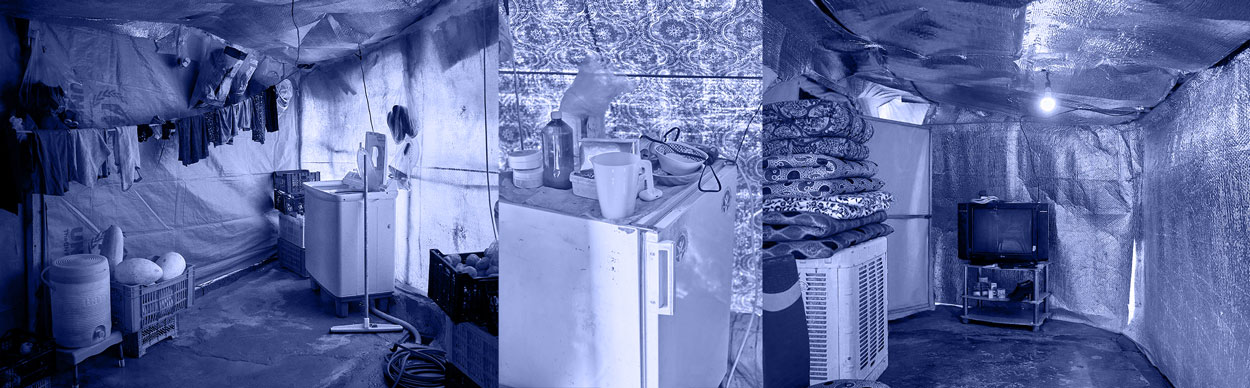 Provisorien auf Dauer gestellt. Alexander Fichtner (Dorsten) zeigt Fotografien aus dem Sheikhan Camp im Irak. Jesidische Flüchtlinge haben sich in den Notunterkünften – so gut es ging – häuslich eingerichetet. Das Fliesenschön zeigt auf LKW-Folien applizierte Aufnahmen dieser Innenräume. Die Begleitveranstaltungen der Ausstellung präsentieren Kunst aus dem Nahen Osten und ermöglichen das Gespräch mit einem der Verantwortlichen für das Sheikhan Camp.